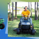 Riding lawn mowers, like the name suggests, are designed so you can ride on top of them while you mow the lawn. These mowers, which resemble a tractor, are better suited for larger lawns that are around one acre or larger. Learn more in our guide to riding lawn mowers.