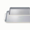 Size: 18 x 13 in and 15 x 10 in. | Material: aluminized steel with a nonstick ceramic coating | Gauge: N/A | Maximum temperature: 550 degrees Fahrenheit