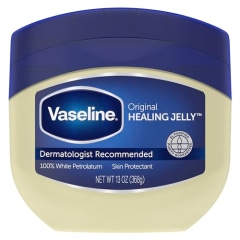 At night, I use the same cleanser as I do in the morning. To remove any wax-based or heavier makeup products, I use a cotton round dipped in Vaseline to remove mascara, eyeliner and similar products, which is a safe and gentle way to remove stubborn makeup.